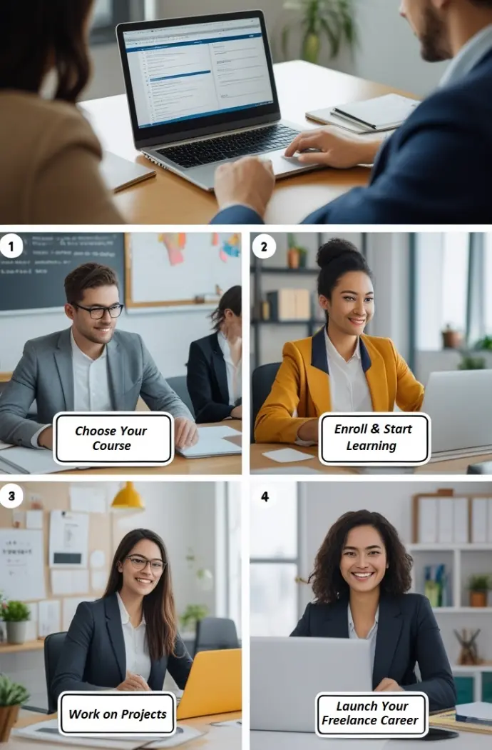 Apni interest aur future goals ke mutabiq skill select karein – Social Media Marketing, Graphic Design, Shopify, Dropshipping, ya Freelancing.